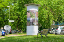 Florian Thate, WALK WALK WALK WALK, 2025, Installationsansicht, Litfaßsäule Freiburg-Wiehre Bahnhof, Foto: Marc Doradlzillo, © Biennale für Freiburg 3
